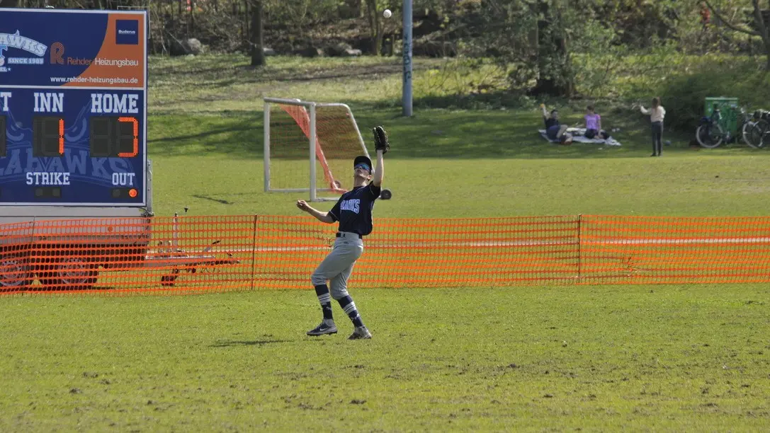 Die zwei folgenden Innings waren von starken defensiven Leistungen beider Mannschaften geprägt, so dass die Kieler sich im siebten Inning oben mit einem Run Vorsprung wiederfanden. Dieses startete mit zwei Walks aus Sicht der Kieler gut, ließ dann allerdings zwei Outs folgen. Larsson Barthel konnte jedoch wie schon zu Beginn des Spiels einen Error forcieren und so kam Torge Lagler erneut bei Bases Loaded an die Platte. Auch diese Gelegenheit ließ er sich nicht nehmen und schlug erneut mit einem Basehit zwei Runners nach Hause. Nachdem aufgrund eines Errors noch ein Run scoren konnte, galt es eine 8-4 Führung im letzten halben Inning zu verteidigen. Dieses starteten die Bremer gleich mit einem Single des Nummer 9 Hitters und zeigten nochmal, dass sie sich noch nicht aufgegeben hatten. Jetzt wartete das Top of the Line-Up welches diese Saison schon gezeigt hat, dass es etwas davon versteht einen Baseball zu hauen. Den Lead-Off-Hitter konnte durch Schmiddey jedoch per Strikeout ausgemacht werden. Der nächste Schlagmann produzierte so dann einen hohen Flyball ins Leftfield. Der Leftfielder der Seahawks Frederic „Freddy“ Ibs hatte jedoch einen guten Read und fing den Ball, der drohte vor ihm aufzukommen, noch mit dem letzten Zentimeter seines Handschuhs. Diesem enorm wichtigen Aus folgte schließlich noch ein Fielder’s Choice, der dafür sorgte, dass für die Gäste aus Kiel schließlich ein 8-4 Endstand auf dem Scoreboard stand.