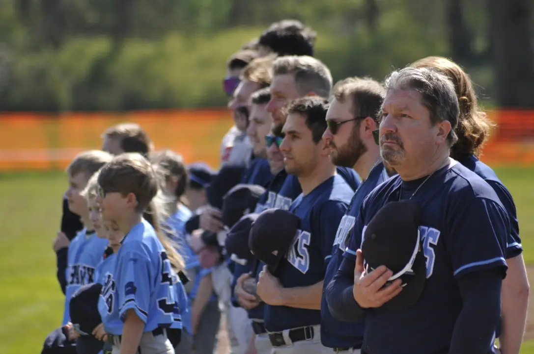 Zuvor liefen beide Teams in Reihe auf Feld und präsentierten sich den Fans, welche sich an einem sonnigen Samstag auf der Moorteichwiese versammelten, um sich an dem Baseball der zweiten Bundesliga zu vergnügen. Beim Einlaufen der Teams waren dieses Jahr unsere Spieler aber nicht allein. Mit ihnen rannten die Einlaufkinder aus dem Kieler Nachwuchsbereich aufs Feld und sangen mit den Erwachsenen das Schleswig-Holstein Lied, bevor das Derby des echten Nordens begann.