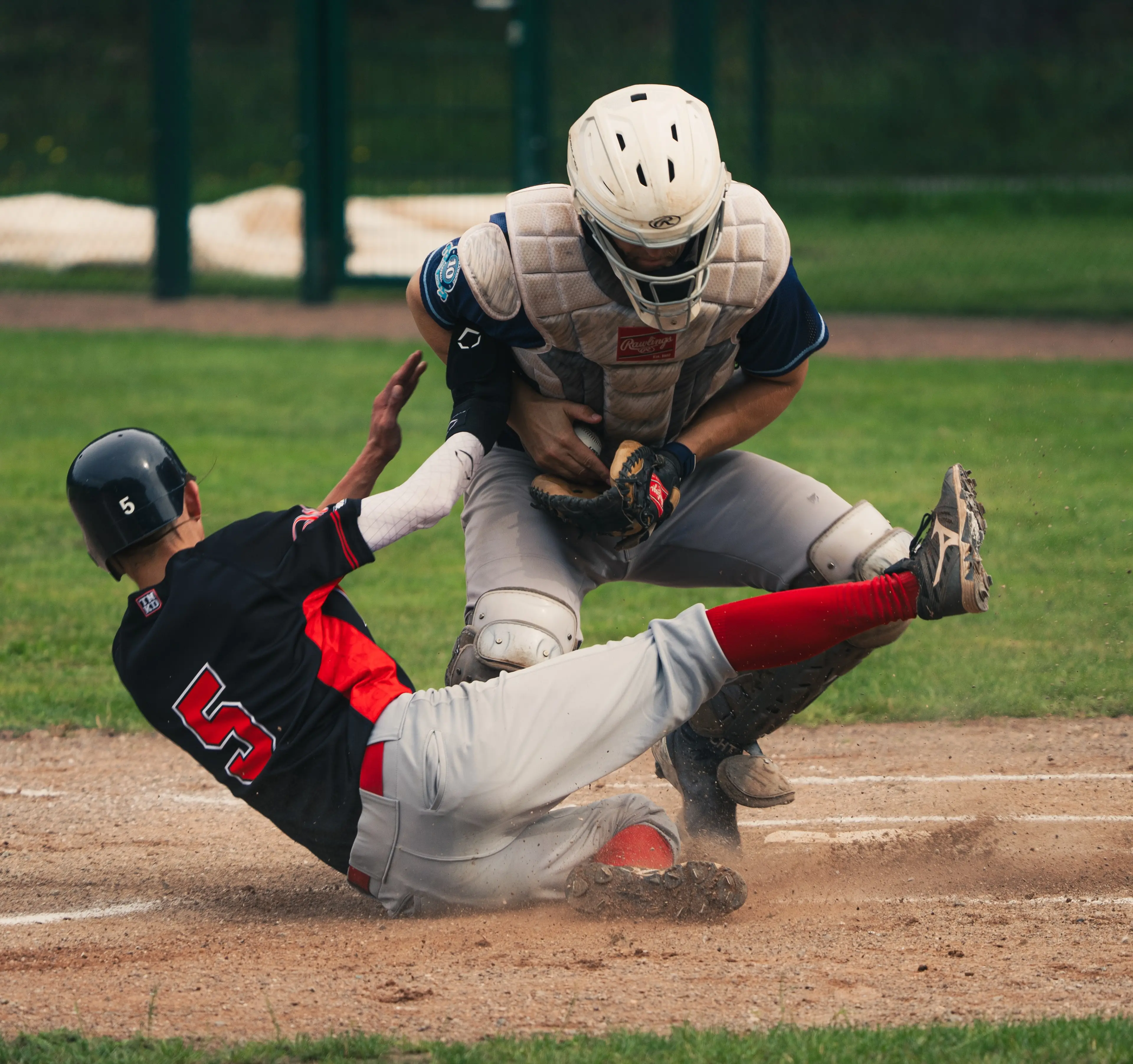 Der erwähnte erste Pitch wurde von dem Dortmunder Catcher Alba direkt gegen den Zaun im Leftfield gehämmert und somit hatten wir direkt einen Runner auf der zweiten Base. Ein Sacbunt brachte den Runner auf die dritte Base und das erste Aus für Kiel. Danach folgte ein Base on Balls, woraufhin Bartel jedoch im Spiel ankam und die nächsten beiden Schlagleute mit Strikeouts wieder auf die Bank schickte. Unsere Offense startete etwas verhaltener und lediglich Coy kam durch einen Walk auf Base. Im zweiten Inning zeigte unsere Defense, dass sie dem Druck der Dortmunder Offense standhalten konnte. Busch fing einen Bunt Popup und Baumann konnte auf einen Double vom Dortmunder Dohle den Baserunner Krolop mit einem perfekten Wurf aus dem Leftfield an der Homeplate auswerfen. Lingg konnte dann mit einem spektakulären Diving Catch im Rightfield das Inning beenden und einen Run verhindern.