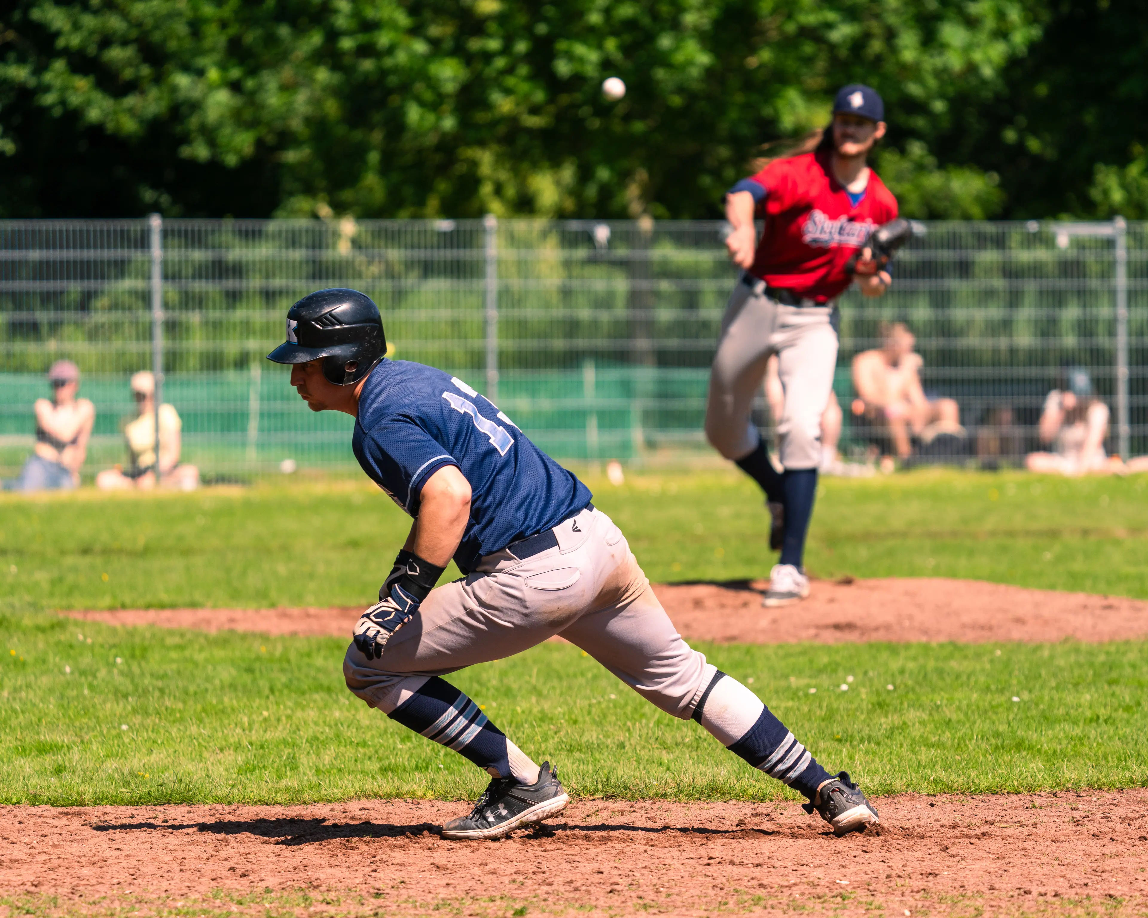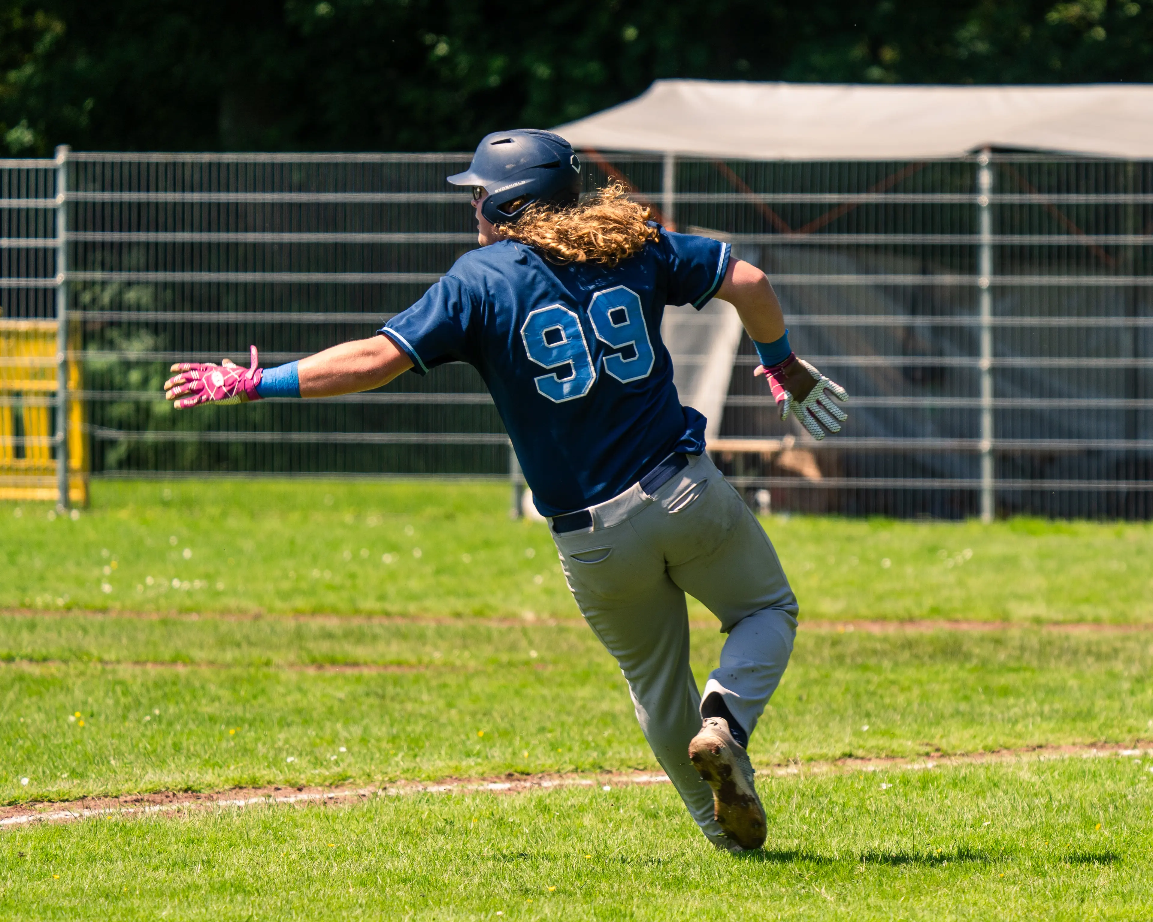 Das Gästeteam ist zwar neu in der 2. Bundesliga, doch zeigte direkt zu Beginn, dass sie mit der Keule umzugehen wissen. Ein mächtiger Schwung, der den Ball im zweiten Inning über den Outfield Zaun befördert bringt den ersten Punkt für die Berliner. Ein Double zu Beginn des 3. Innings kann von den Gästen zum zweiten Punkt verarbeitet werden.