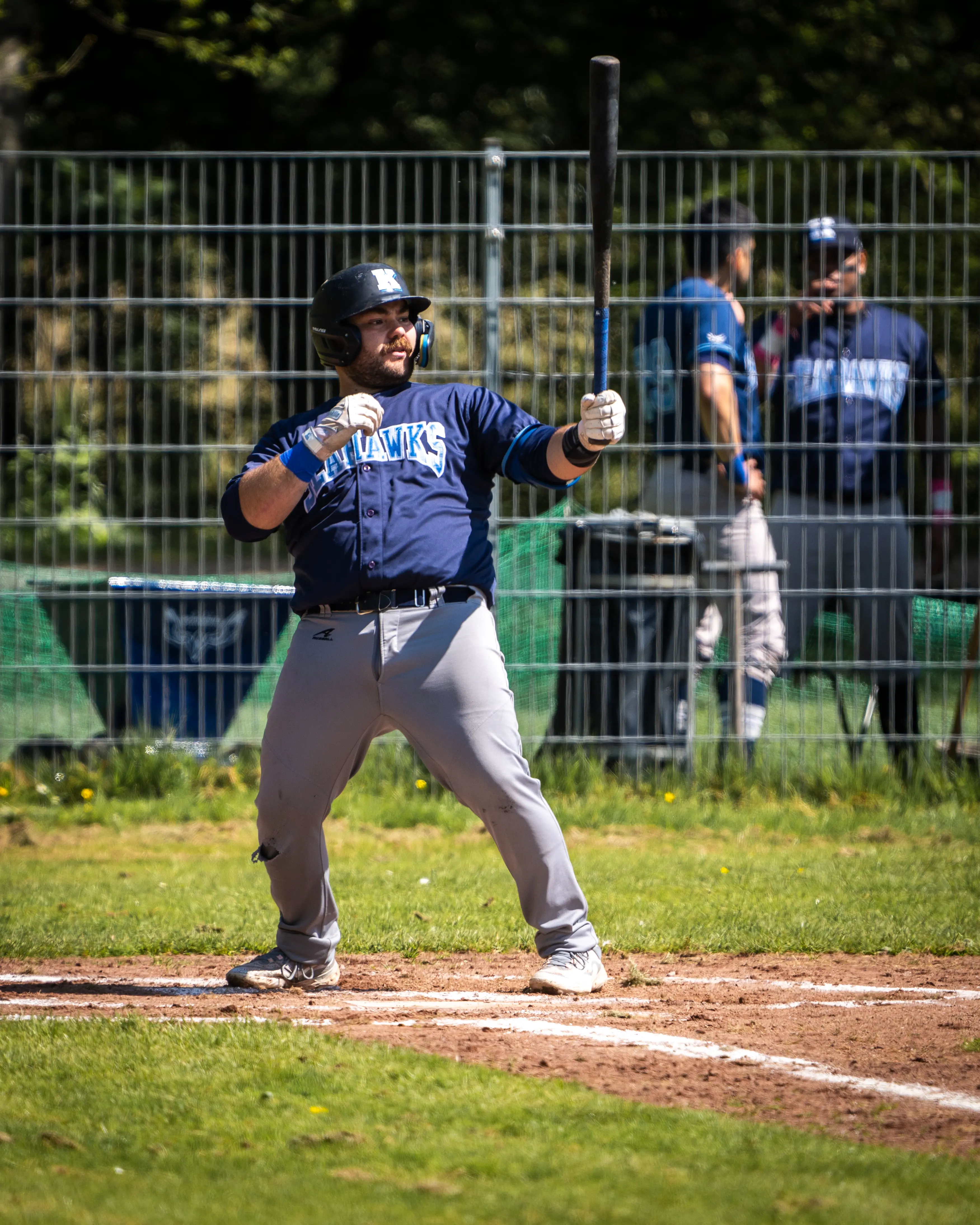 Das erste Spiel wurde von Andreas Schmidt und Sven-Ole Busch gestartet. Der Tag begann mit einem harten Hit der Hannoveraner. Dies beeindruckte die Seahawks nicht und sie konnten mit einem Fly-Out und einem Doubleplay in die Offensive starten. Nach zwei anfänglichen Outs hat unser australischer Import Nicholas Coy bei seinem ersten At-Bat an diesem Tag direkt den Ball über den Zaun katapultiert. Der Homerun brachte den Seeadlern den ersten Punkt und somit auch die Führung. Der anschließende Hit wurde vom Shortstop aufgenommen, zur Eins geworfen und führte somit zum dritten Out und auch zum Wechsel in das zweite Inning.