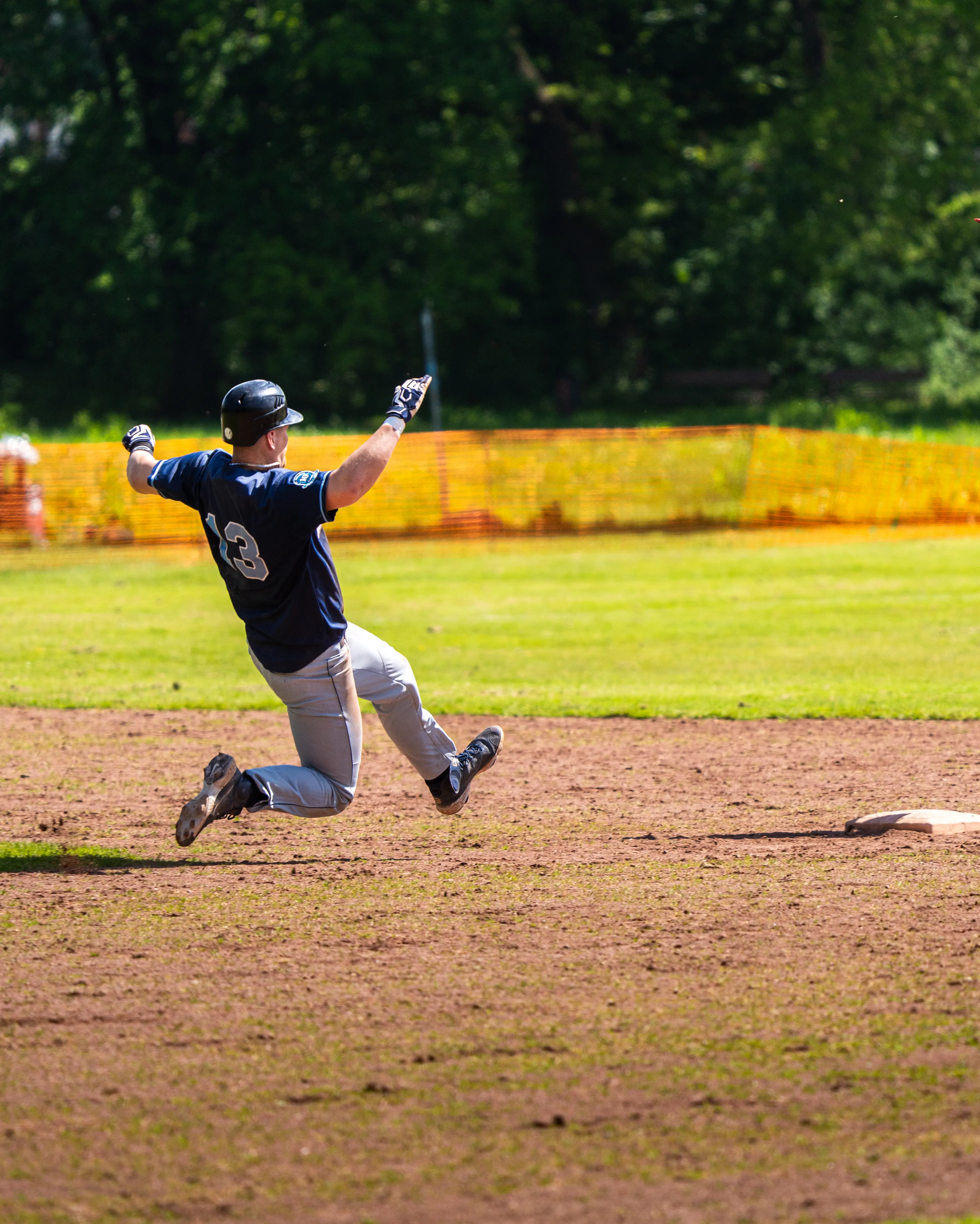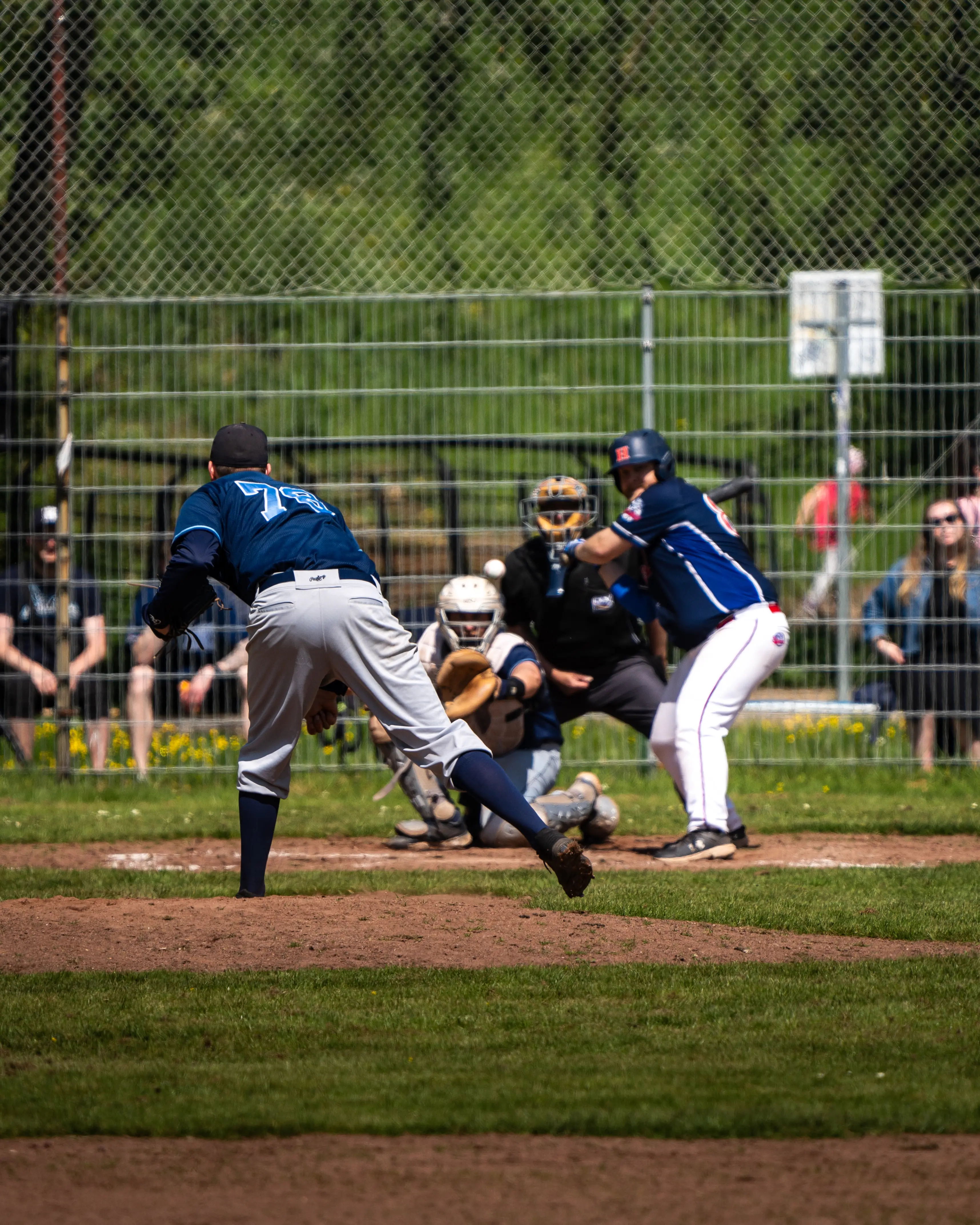 Die Offensive der Kieler im zweiten Inning wurde mit einem weit geschlagenen Double begonnen, welches leider nicht zum Punkt umgewandelt werden konnte. Im gleichen Inning hat sich einer unserer neuen Mitspieler (Joseph Tumero) beim Schlagen leider verletzt. Thorge Lagler hat daraufhin seine Position übernommen.