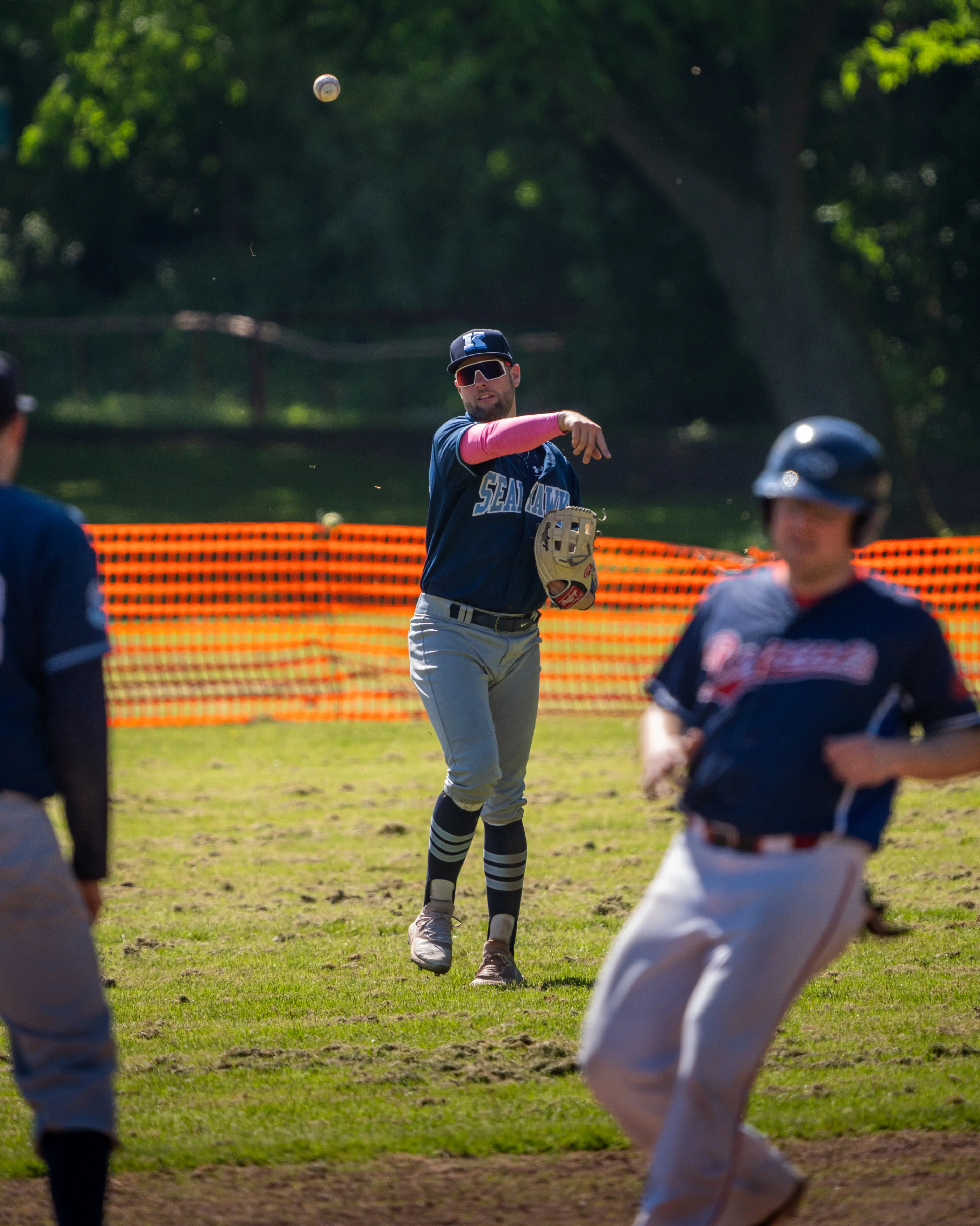 Die ersten beiden Batter der Gegner hatten gute Kontakte und erreichten mit zwei Hits die erste und zweite Base. Hier konnte jedoch wieder die Defensive der Kieler punkten und alles, was ins Feld ging, aufsaugen und die nächsten drei Batter durch Groundouts auf die Bank schicken.