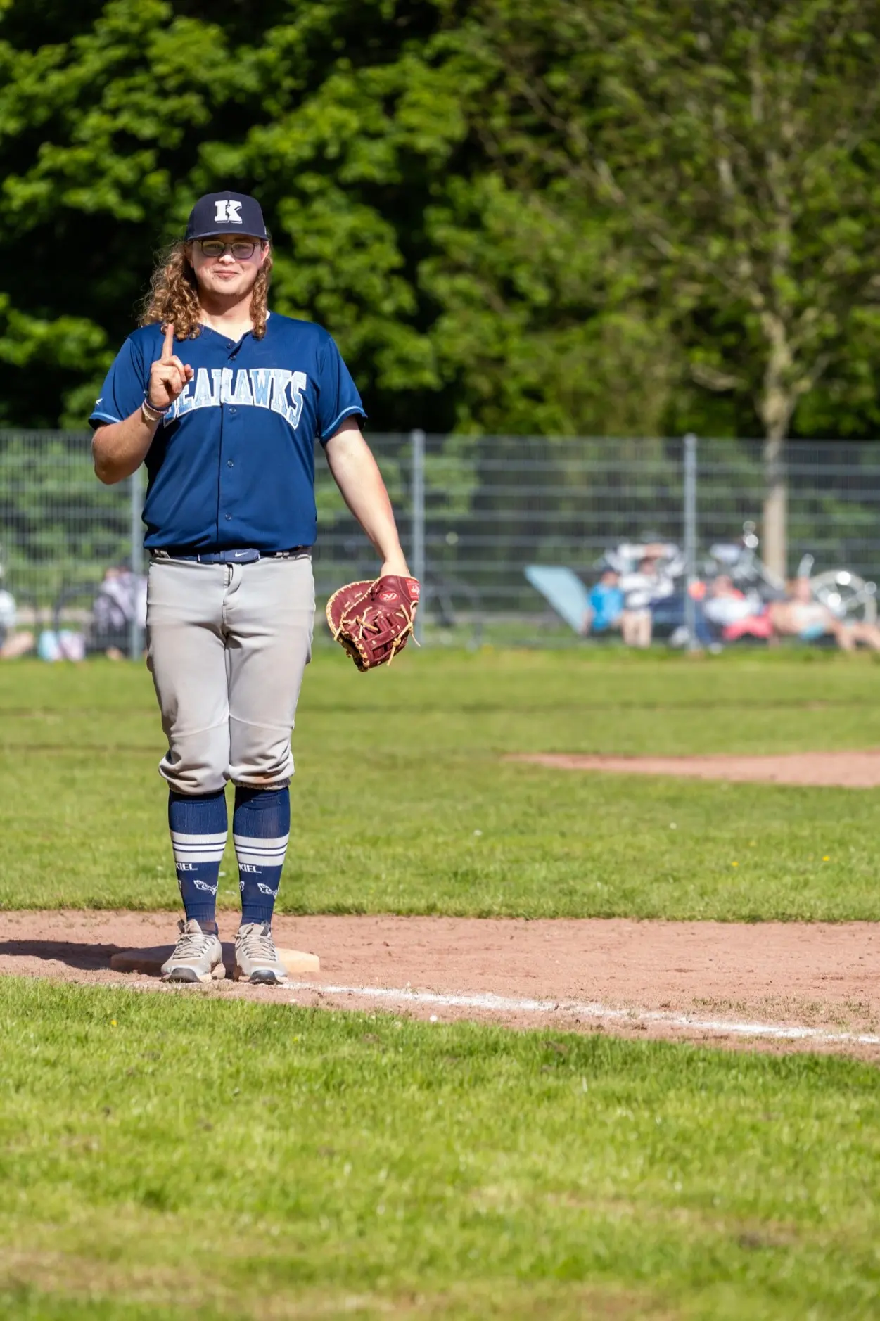 Das erste Spiel des Tages war gezeichnet von dem hervorragenden Pitching von Vincent Voß (5.0 IP, 3 ER, 5 K), einer soliden Defense und starken offensiven Leistung des Teams, besonders in den ersten drei Innings des Spiels.