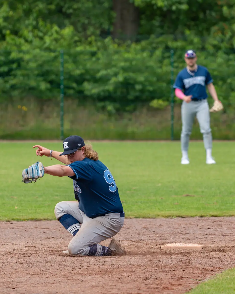 Nach kurzer Unterbrechung ging es dann auch direkt weiter mit dem zweiten Spiel. Die Ambitionen der Kiel Seahawks, mit einem Sweep im Gepäck nach Hause zu fahren, schienen nun greifbar nah. Genau wie im ersten Spiel, gelang es den Seahawks auch hier wieder, durch einen Walk von Königs, Druck auf die Roadrunners auszuüben. Ein Single von Schmidt vollendete diesen dann mit ersten Run für die Seahawks. Doch die Roadrunners Antwort hatte es in sich. Im ersten Innings kamen alle 9 Schlagleute At-Bat und die Roadrunners scorten 4 Runs auf die Defense der Kiel Seahawks und deren Pitcher Torge Lagler. Nach zwei weiteren Runs der Roadrunners im zweiten Inning, in welchem die Defense der Kiel Seahawks auch zwei Errors verursachte, wurde Andreas Schmidt als Relief Pitcher eingewechselt. Doch auch ein zweiter Run der Kiel Seahawks im dritten Innings aktivierte nicht die nötigen Reserven um den Roadrunners noch einmal wirklich gefährlich zu werden. Und so entglitt das Spiel den Seahawks langsam aus der Hand, während die Roadrunners sowohl beim Pitching, als auch in ihrer Offensive starke Leistungen zeigten. Endresultat Spiel 2: 2:11