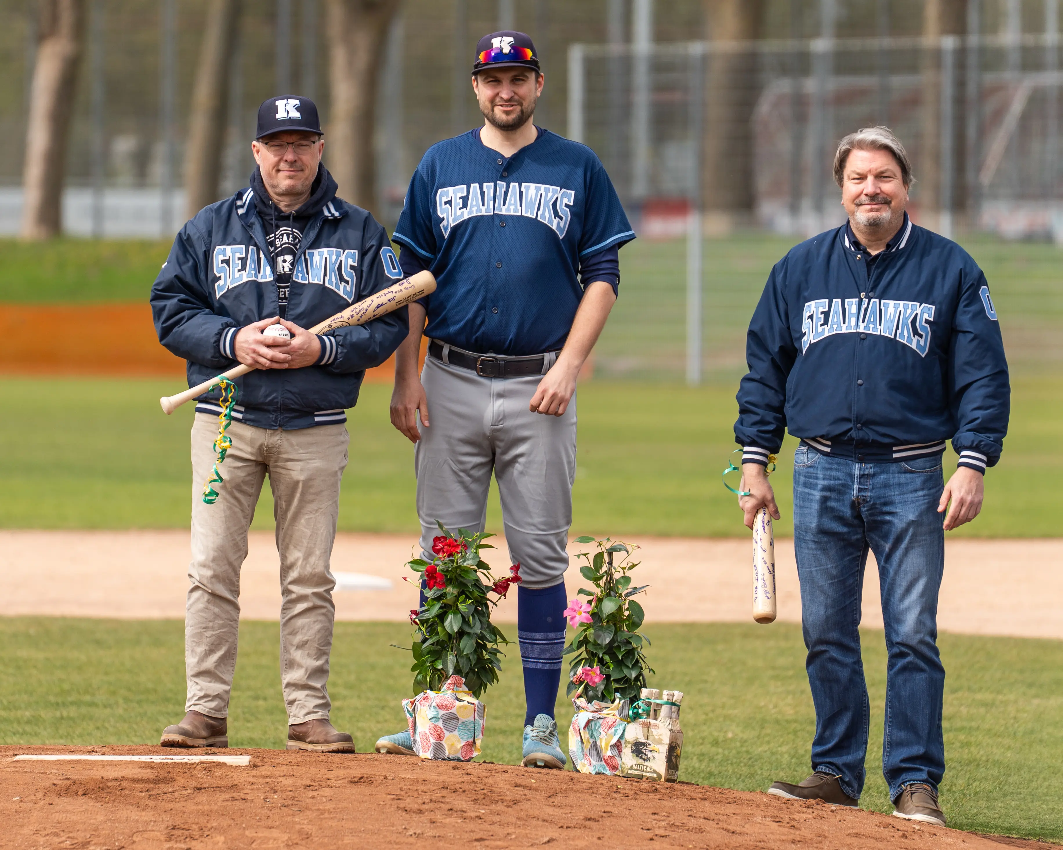 Nach dem First Pitch von Tim Rehder, der das Projekt maßgeblich mitentwickelt und begleitet hat, ging es dann vor den ca. 300 Zuschauern in die neue Saison.